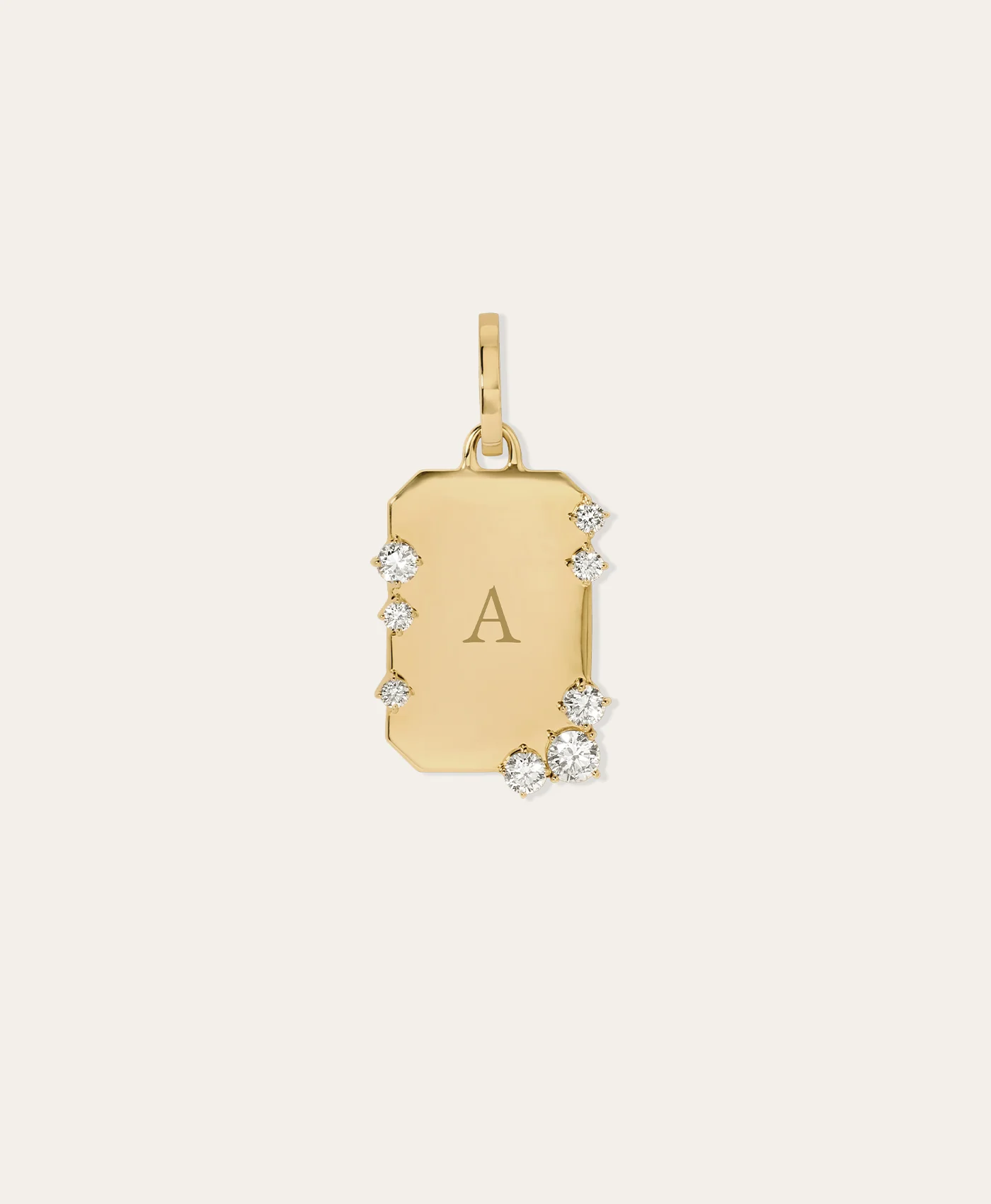 14k yellow gold hinged dog tag charm with lab grown diamonds.Ā